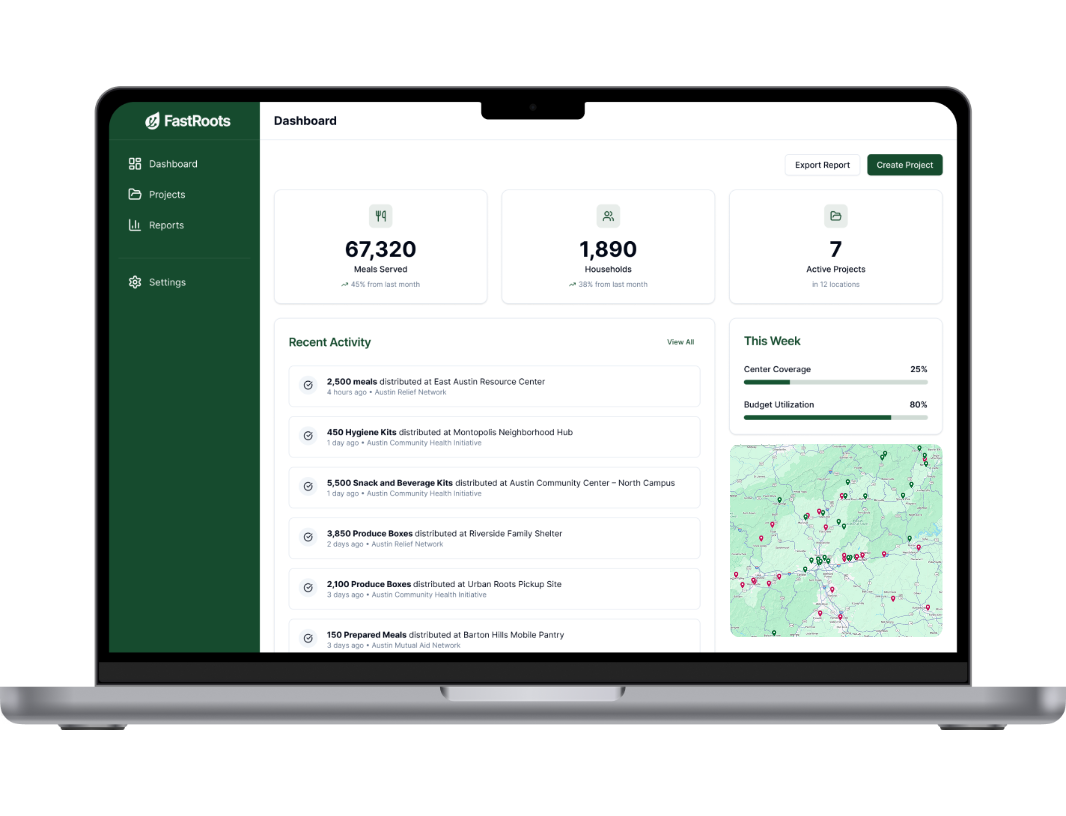 FastRoots is a collaborative data platform built specifically for community foundations coordinating food relief ecosystems. Grantees report once. You see everything. Everyone wins.